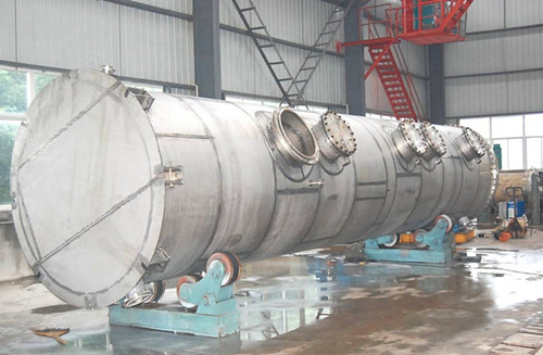 連續水洗塔,其特征在于:所述的分離塔底部設有粗脂肪酸甲酯進口以及洗滌水出口,頂部設有粗脂肪酸甲酯出口以及洗滌水進口,分離塔腔體下端設油水分離段。本實用新型實現了生物柴油水洗的連續化生產,提高了生產工藝的自動化水平;采用特殊結構的水洗塔,強化了油脂和水接觸,改變了作坊式的釜式水洗的落后工藝,顯著縮短了水洗時間,解決了水洗返酸的頑疾,很大程度的節約了工藝水,減少了環保壓力。